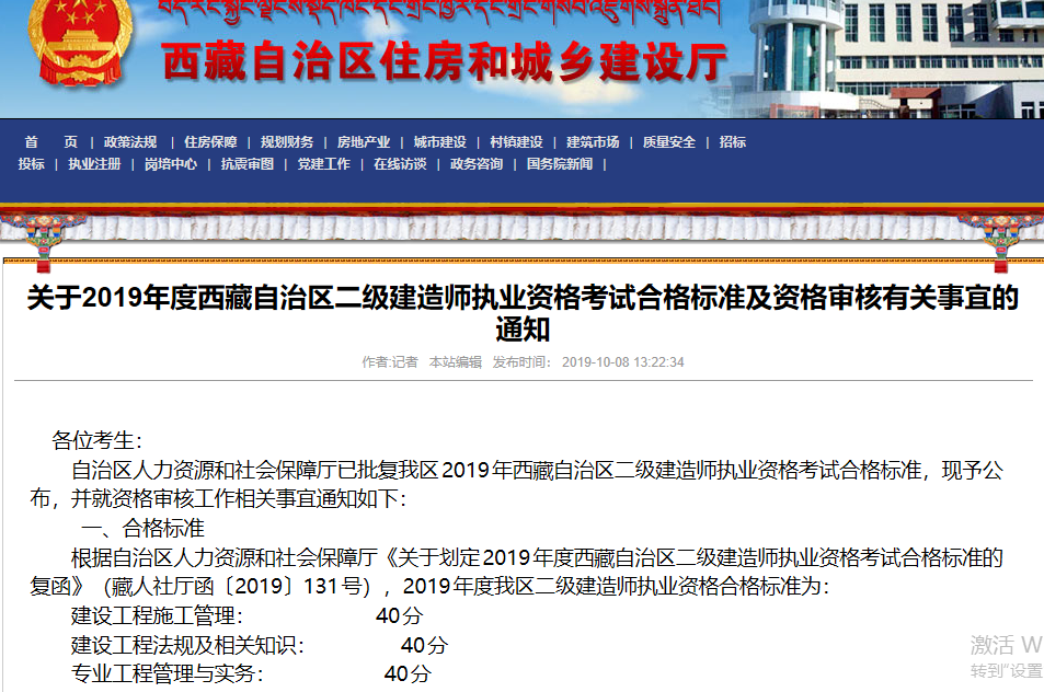 关于2019年度西藏自治区二级建造师执业资格考试合格标准及资格审核有关事宜的通知