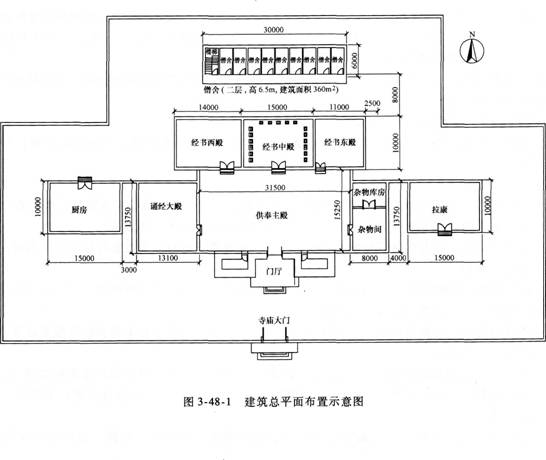 - 某寺庙建筑群(图3-48-1)由主体建筑和附属建筑构成,均为土石木建筑结构。主体建筑建于公元1850年,属于自治区(省)级文物保护单位。主体建筑包括供奉主殿、诵经大殿、经书殿和杂物间,均为单层。其中,供奉主殿建筑面积480㎡,净高8.5m;诵经大殿建筑面积180㎡,净高6m;经书东殿建筑面积110㎡,净高6m;经书中殿建筑面积150㎡,净高6m;经书西殿建筑面积140㎡,净高6m;杂物间建筑面积110㎡,净高5m。主体建筑东侧有一栋拉康(单层,高4.5m,建筑面积150㎡),距离寺庙主体建筑4m;主体建筑北侧有一栋僧舍(二层,高6.5m,建筑面积360㎡),距离寺庙主体建筑8m;主体建筑西侧有一栋厨房(单层,高5.Om,建筑面积150㎡),距离寺庙主体建筑3m。寺庙建筑群未设置室内、室外消火栓系统、自动喷水灭火系统、火灾自动报警系统等消防设施,只配有灭火器、消防砂等灭火器材。寺庙距离最近的已组建专业消防力量的县城约有20km。问题:某寺庙内部采用大量木质材料建筑构件,且悬挂有许多帐幔、经幡、唐卡、哈达等可燃易燃物品,其内部的电气线路及电器装置的安装应注意哪些事项?